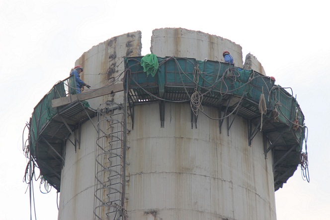 10、因為企業生產的需要,企業原來的這座煙囪已經不能滿足需要,需要進行煙囪拆除加高施工,以使煙囪的口徑達到實際工程的需要。