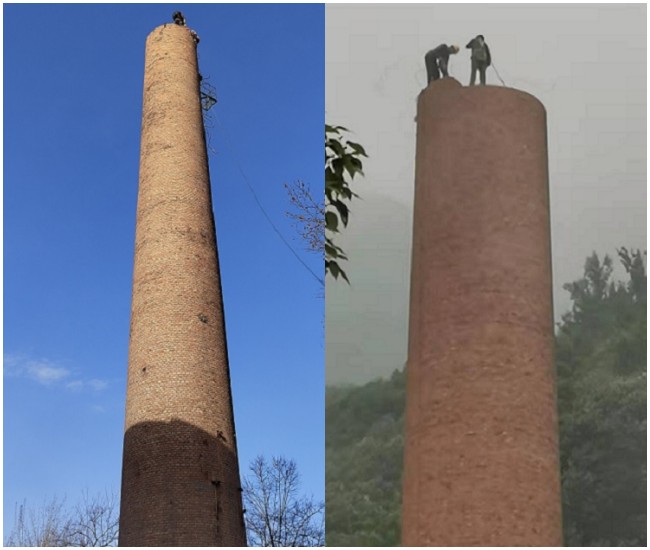 1、拆除煙囪施工人員進現場首先將登高的爬梯逐個檢查。