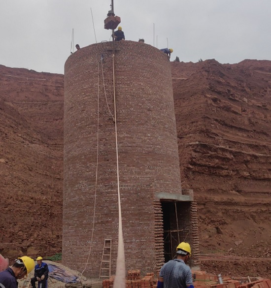 5、在磚砌煙囪施工中,應首先配置好消防器材和設施,有條件的,應鋪設室外消防水管和消防栓。